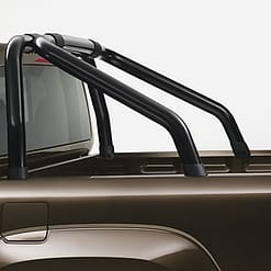 Il roll-bar originale Volkswagen, nella massiccia versione a doppio tubolare, รจ realizzata in acciaio inox lucidato a specchio. Con un diametro di 76 mm i tubi creano una nota estetica fortemente pronunciata. Il roll-bar, classica caratteristica da pickup, valorizzerร l’estetica della Vostra Amarok. Essa si monta sui bordi del vano di carico, in modo da lasciare invariato il volume di carico complessivo.