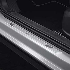 Il richiamo dello stile: i pregiati listelli battitacco in alluminio proteggono e personalizzano l’area d’ingresso del veicolo. Un kit comprende due listelli battitacco con scritta del veicolo.