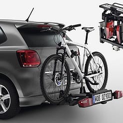 Il portabici originale Volkswagen Compact II è piccolo, leggero e compatto. Trasporta fino a due biciclette. Grazie al sistema pieghevole, le luci posteriori, le guide portabici e la cornice per supporto possono essere chiuse completamente e riposte, per esempio, nel bagagliaio. Con l’interruttore a pedale di nuova concezione, il ribaltamento sul veicolo è particolarmente semplice (anche con le biciclette). In questo modo il bagagliaio rimane facilmente raggiungibile. Il supporto si blocca automaticamente quando viene sollevato. Il portabici è anche disponibile per il trasporto di tre biciclette. È compresa la comoda borsa da trasporto.